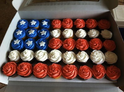 Make an American flag cake with cupcakes or mini-cupcakes. Again, easy to transport and serve.