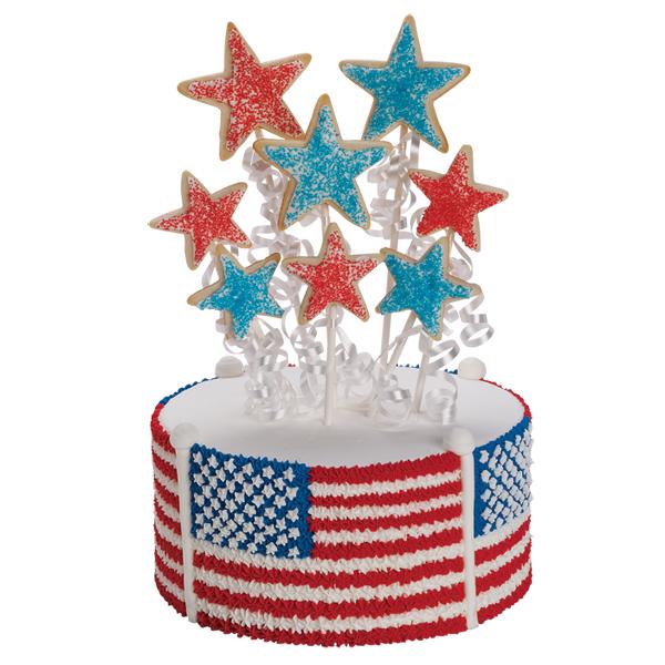 You can make a stationary american flag cake or an american flag cake blowing in the wind. This decor also looks great on pies, think maybe blueberry pie?