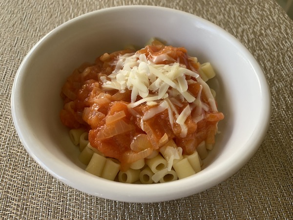 We added some pasta underneath and a little cheese on top… yum! Who would have guessed that it all began with (almost) rotten tomatoes?