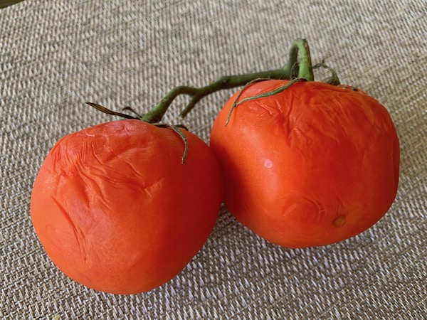 These old tomatoes actually laid the base for a very tasty pasta dish. We removed the skins and simmered them with some onions and a touch of garlic. Nothing else was needed in the pot because the tomatoes were so juicy at this point. We must admit that we did use Maui onions, which is why the resulting sauce was so sweet and delicious, but the dish wouldn’t have been possible without these old mushy tomatoes.