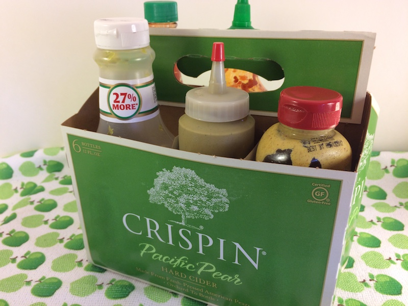 This simple condiment holder keeps the shelves from getting sticky, although you may need to recycle the paper six-pack now and then and trade for a newer version in order to avoid sticky build-up on the carrier. It frees your hands when gathering items from the fridge to the counter or table, eliminating the possibility of breakage while trying to save a few steps or seconds by carrying too much at once. And, last but not least, it works great on a picnic table.