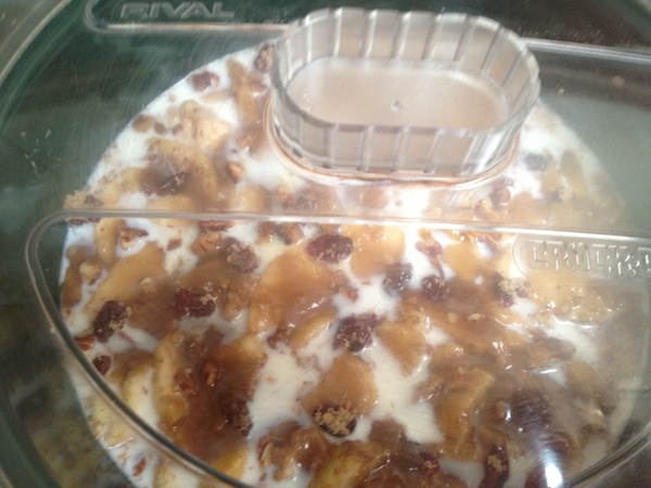 - Add the Milk, Brown Sugar and Craisins. You might notice that I added chopped pecans too, this is NOT recommended – it’s much better to add nuts after cooking (some candied nuts come out ok, but others are a little funky when cooked in the crock pot so it’s better to add them after cooking).