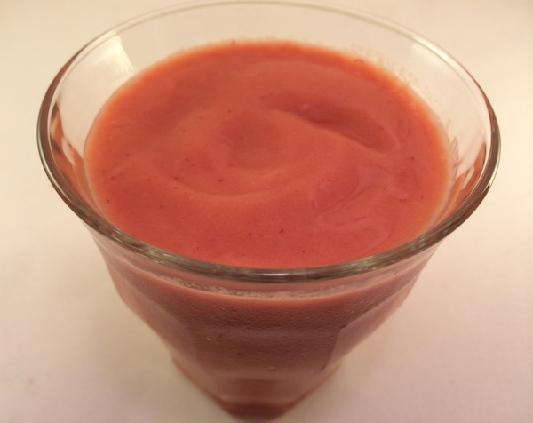 As you can see my fruit really didn’t look too bad, so I used it as is. If the ice covering had grown thicker, then a quick rinse in the colander with some cold water would quickly reveal if the fruit is actually fine or not. A little ice like shown does not hurt a smoothie at all, after all you usually add ice to smoothies anyways. But again, you will want to rinse the fruit if the ice is thick to be sure that the fruit is not freezer burned. Using frozen fruit makes better smoothies because then you can use less, or even go without, ice. That way your thicker smoothie has a stronger fruit flavor without being diluted.