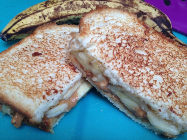 You can even do a gourmet grilled cheese sandwich without any cheese at all. This one is void of both cheese and meat but still packs plenty of protein. This sandwich is said to have been a favorite of Elvis Presley who would order it often at the Arcade Restaurant in Memphis from his regular booth. It’s simply peanut butter and sliced fresh banana placed between bread and grilled. Notice the banana from the bunch I used, it was getting very close to it’s eat by date – just goes to show that old bananas are good for more than just banana bread. This one is also fantastic done on cinnamon raisin bread, and you can add a little Nutella or Apricot jam if you want it even sweeter.