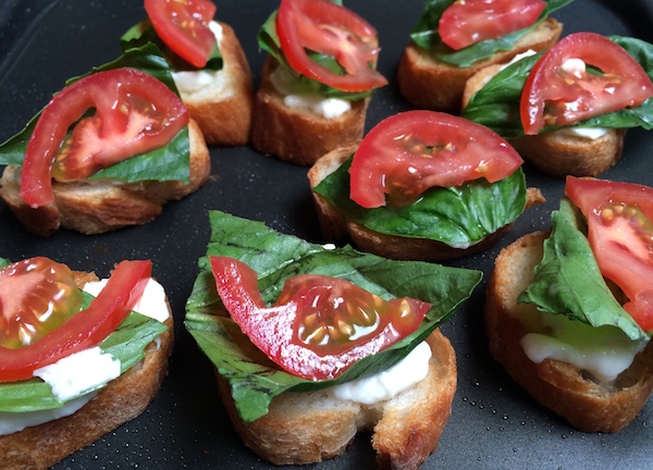 This is a great appetizer for a crowd. Typically made with a sliced baguette put in the toaster or oven, try putting the slices on a griddle that’s been sprayed with olive oil. Turn the bread and then add a slice of fresh Mozzarella, a fresh basil leaf and a slice of tomato. You can also drizzle some balsamic vinegar over the top if desired.