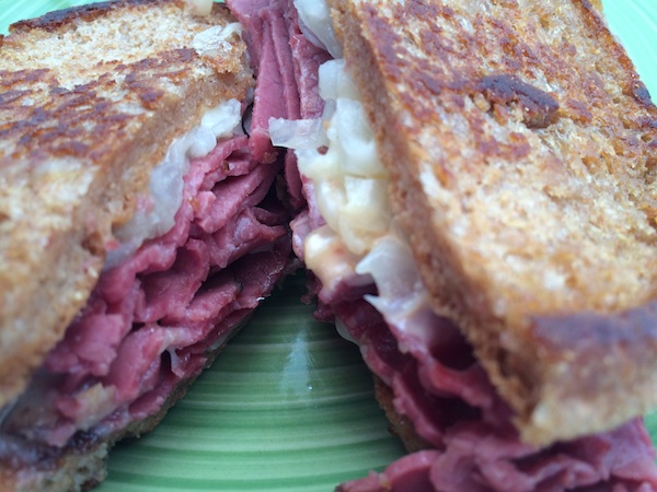 Our next featured gourmet grilled sandwich is called the Reuben. It’s made with either corned beef or pastrami, but leftover corned beef from St. Patrick’s Day works just great. This sandwich is typically grilled with rye bread. If you live near a Wegman’s grocery, grab some of their swirled rye for a tasty and attractive Reuben. Add Swiss cheese, sauerkraut and thousand island dressing and you’ve got another gourmet grilled cheese – the Reuben.