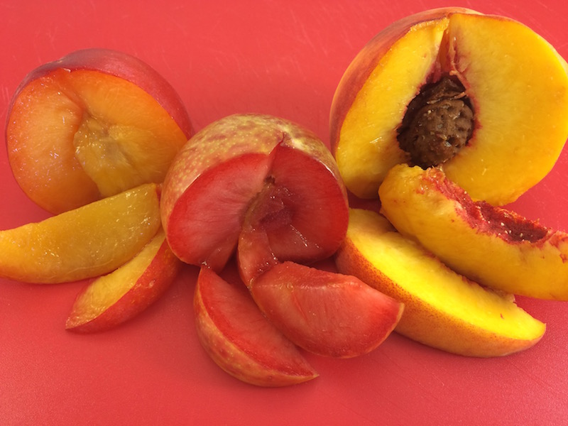 Although a peach is not really all that different than a nectarine in color, flavor, size or texture; the biggest difference between a peach and a nectarine is the skin. We found the peacharine skin to be slightly fuzzy like the peach, but not as thick or tough as peach skin. So, a peacharine experience is like eating a peach where the skin does not bother you. Eating a peacharine was very pleasant and ours were freestone, which made for nice sampling.