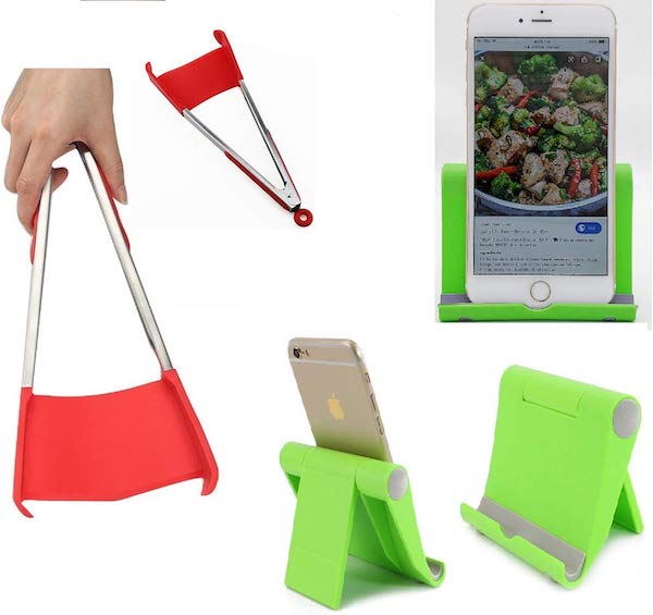 This red and green combo makes the perfect Christmas gift for those who love to use online recipes. Find a clever spatula/tongs and an iphone/ipad holder to make reading a recipe and then flipping or grabbing the result a piece of cake.