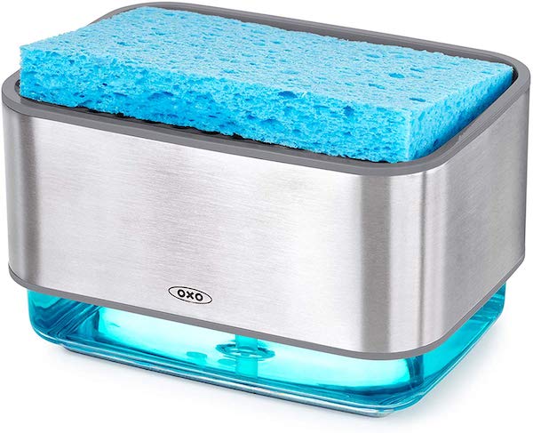 A sponge holder that’s kept high and dry, yet full of soap with a simple touch of the hand. This also eliminates having a bottle of dish liquid in the crowded sink area.