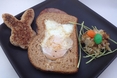 You can use your cookie cutters to cut a bunny hole in a slice of bread. Using a hot greased skillet, place the bread in the skillet and then crack an egg into the bunny hole. Flip when almost cooked for an over easy egg with the toast attached.