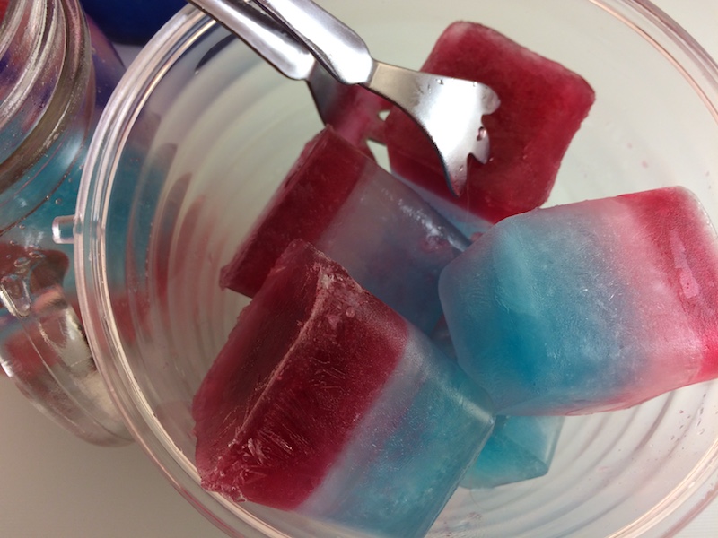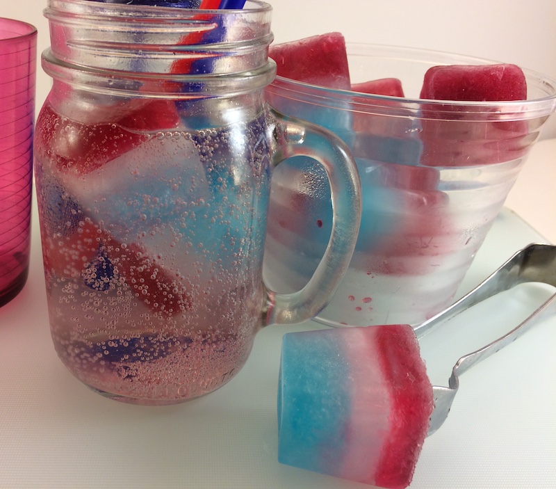 We did a post last year to make layered drinks to celebrate the July 4th in America. This year, why not try layered red, white & blue ice cubes? Extremely festive and sure to perk up sparkling water or any clearish liquid refreshment of choice.