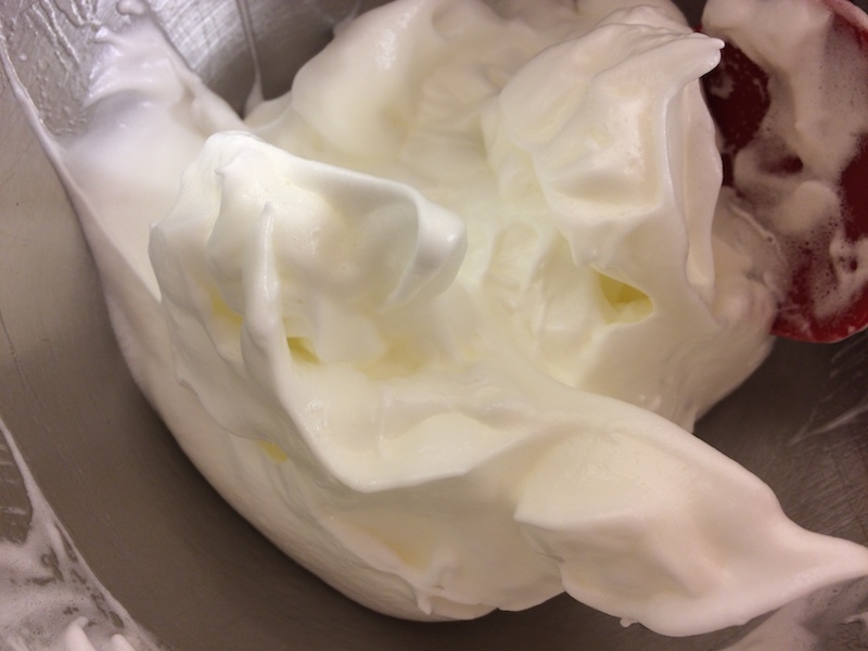 To make a great meringue beat the egg whites, according to the directions, until stiff peaks form. A quick dip of the spatula should produce a little mound with a tip that rises up above the mixture and then curls over at the tip. -