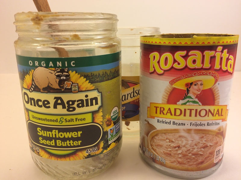 Glass jars don’t need to be washed before recycling anymore, that’s a waste of water. Simply use a rubber scrapper to remove the last bits of food from the jar before it hits the curbside bin. Same goes for plastic jars. Also, tin cans do not need the labels removed before recycling.