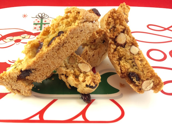 Take your favorite almond biscotti recipe and add shelled green Pistachios and Craisins into the batter at the end of mixing. This twist makes the cookie more flavorful and festive.
