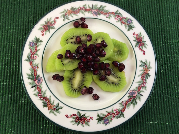 This simple dish of cut kiwi and pomegranate seeds is both tasty, healthy and beautiful. Serve with yogurt, if desired. You might notice that these pomegranate seeds are more of a maroon color – they were soon reaching the end of their shelf life but still full of flavor and juice. Extract pomegranate seeds easily by following our instructions.