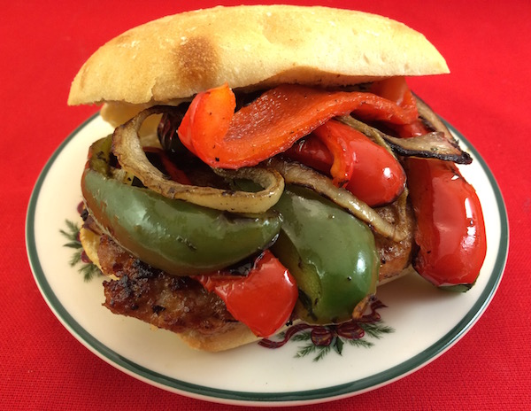 Just pan fry some Italian Sausage patties (hot or sweet) in one pan and in another (or the same if you’re just cooking a few) some green peppers, red peppers and onions. Simply place the ingredients together inside a bun for a hearty sandwich. Add a slice of Provolone cheese, if desired. We make these year around, but only add the red peppers when it’s nearing Christmas.