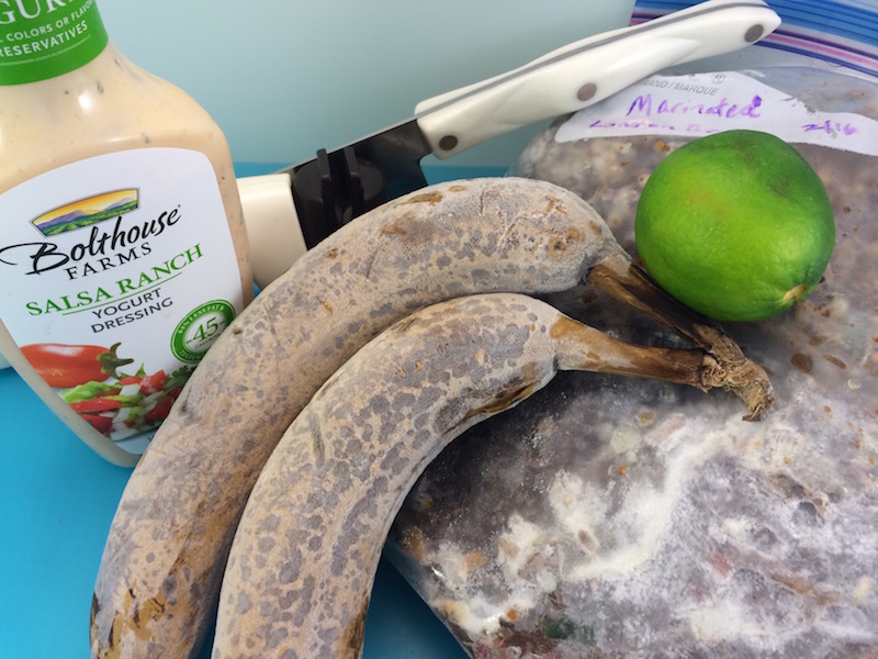 Even if your bananas are beginning to turn brown, just peel them and then toss them whole into a freezer safe bag (note: we just threw whole bananas into the freezer for this picture which was a big mistake as they are extremely difficult to peel once frozen). Using peeled, frozen bananas in your smoothies will make them extra creamy and extra cold at the same time. Win-win.