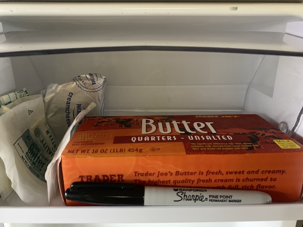 Some items may be difficult to write on, say if they are cold or moist, so remember to write on each item as it is being placed into the fridge with the permanent marker that is so handy to reach each time the refrigerator door is opened.
