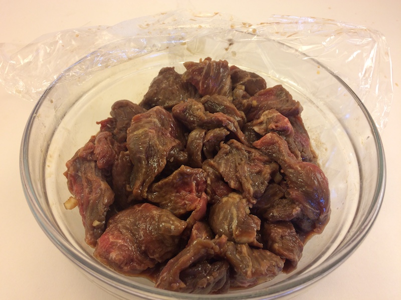 Glass containers are fantastic for marinating, but food safe plastic containers and bags are also good to use. Food safe plastic bags, as shown, make it easy to place the food into and also easy to turn over and over again while marinating. When the project is complete, simply toss away all the mess along with any potential bacteria growth.
