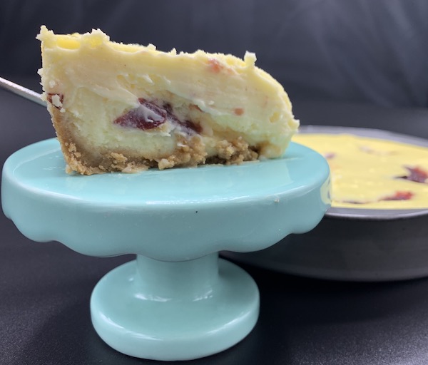 The only problem we found with this idea is that we did not add enough cranberry sauce to the cheesecake pictured above. The comment as people asked for seconds was that they wish we had “put more cherries”. We should have gone with a larger pan so that we could have placed a cranberry in every bite of the cake.