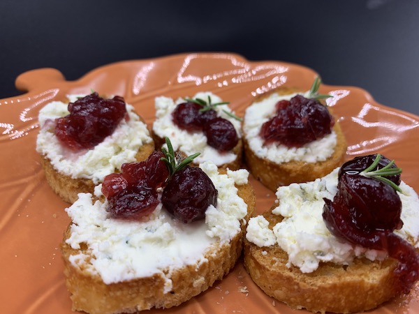 4) Put a dab of leftover cranberry sauce in the center of each appetizer and garnish with a bit of rosemary or orange zest.