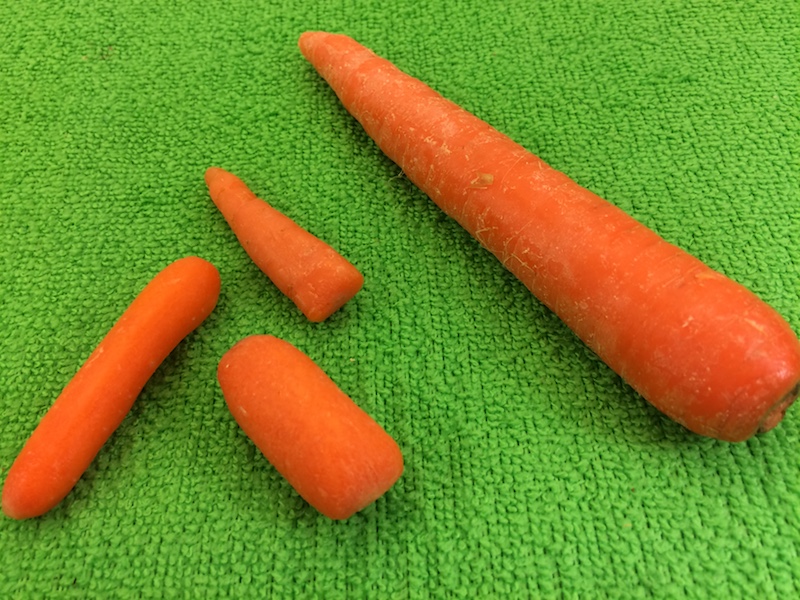That’s right, those cute little snack sized carrots called “baby carrots” are actually just bits that were machine cut from full grown larger carrots.