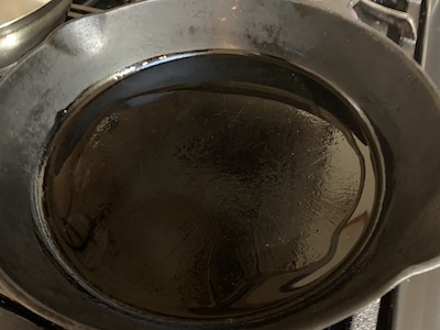 Caution: Keep in mind that we are talking minutes of heat for each step of heating the pan and then heating the tablespoon or two of oil needed for browning. Oil can burn, some oils more quickly than others, so never leave a pan of oil on the stove unattended since grease fires are extremely dangerous.